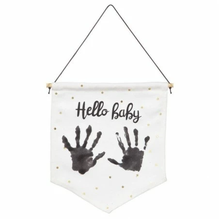 My Baby Flag Fiocco nascita personalizzabile con kit impronta incluso per realizzare l’impronta delle mani del neonato.